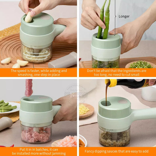 4 in 1 USB Rechargeable Wireless Handheld Electric Food Chopper Vegetable Cutter Set/Vegetable Chopper and Meat grind